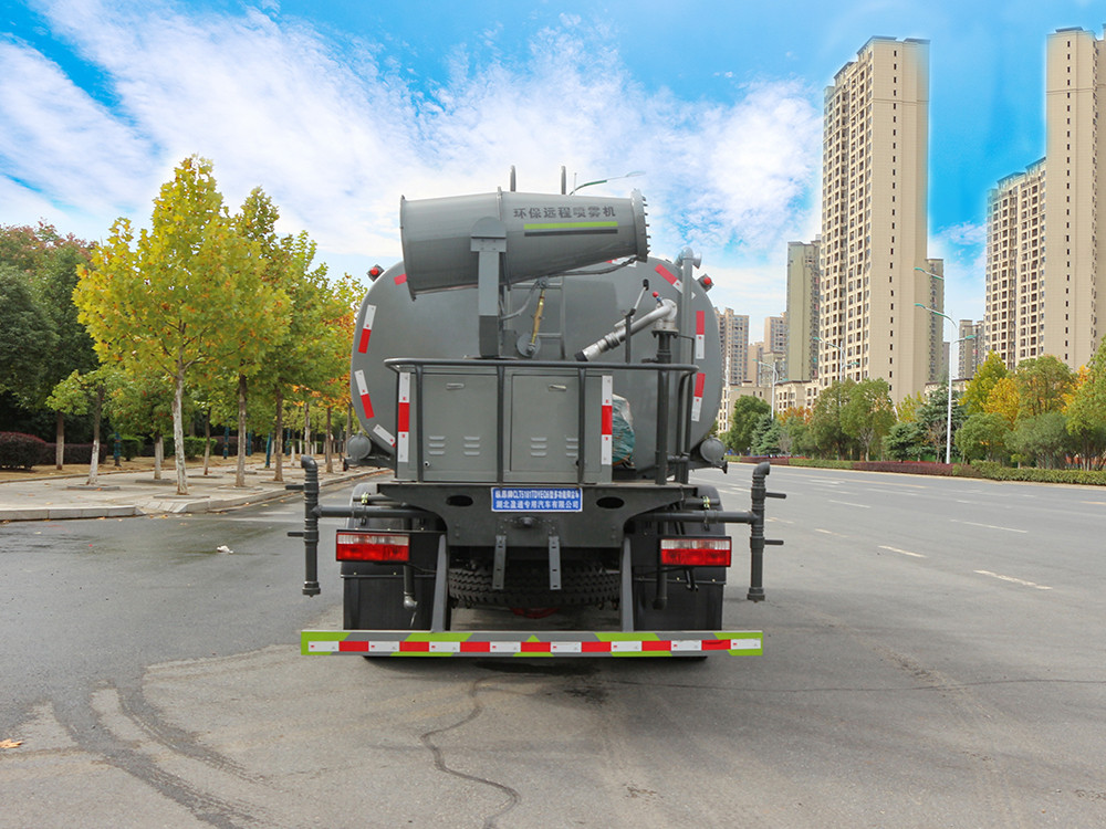 绿化喷洒车标配前喷(鸭嘴)、后对冲、 后洒、侧喷、后置式工作平台,平台上配置绿化水炮(可 360°旋转,既可以调 成柱状,也可以调成雾状),配备优质大功率专用洒水泵(可自吸自排,可从河 里或池塘抽水到罐体),取力器,杂物过滤网,消防接口,自流球阀系统、取力 器、球阀、滤网均为国家标准产品,主管道加粗,法兰垫、法兰盘加厚,大通径 球阀。整体具备性能优良安全可靠、效率高、流量大、维修方便等特点。