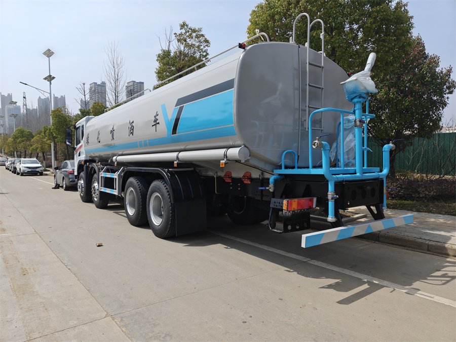产品简述:纵昂牌 CLT5310GPSEQ6A 型绿化喷洒车标配前喷(鸭嘴)、后对冲、 后洒、侧喷、后置式工作平台,平台上配置绿化水炮(可 360°旋转,既可以调 成柱状,也可以调成雾状),配备优质大功率专用洒水泵(可自吸自排,可从河 里或池塘抽水到罐体),取力器,杂物过滤网,消防接口,自流球阀系统、取力 器、球阀、滤网均为国家标准产品,主管道加粗,法兰垫、法兰盘加厚,大通径 球阀。整体具备性能优良安全可靠、效率高、流量大、维修方便等特点。(标配不含电子炮)