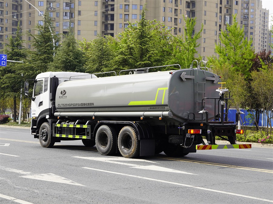 我公司产品标配前喷(鸭嘴)、后冲、后洒、侧喷、后置式工作 平台,平台上配置绿化水炮(可 360°旋转,既可以调成柱状,也可 以调成雾状,更可以调成直冲状、大雨、中雨、小雨、毛毛雨),配 备优质大功率专用洒水泵(可自吸自排,可从河里或池塘抽水到罐体), 取力器,杂物过滤网,消防接口,自流球阀系统、取力器、球阀、滤网 均为国家标准产品,主管道加粗,法兰垫、法兰盘加厚,大通径球阀。 整体具备性能优良安全可靠、效率高、流量大、维修方便等特点