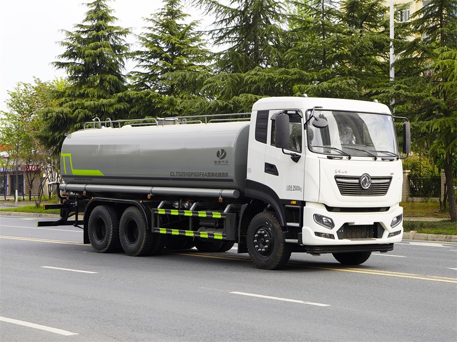 东风天锦22方洒水车配发动机龙擎 300 马力(六缸),法士特 8 档变速箱,轴距 4350+1350,轮胎 11.00 钢丝胎,电动玻璃,空调,前 4.5/后双 10T, 中控锁