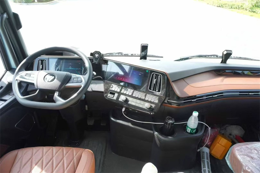 欧曼银河3平地板驾驶室,旋钮式变速箱,手动天窗,电动翻转,有感应雨刮,凝夜蓝金属漆,7寸液晶组合仪表+MP5,10寸大屏+四方位影像,275/80R22.5 18PR-全钢车轮轮胎,600L铝油箱,9t(368)后桥,速比:3.7(自调臂ABS),135Ah铅酸电池+无电压转换器,