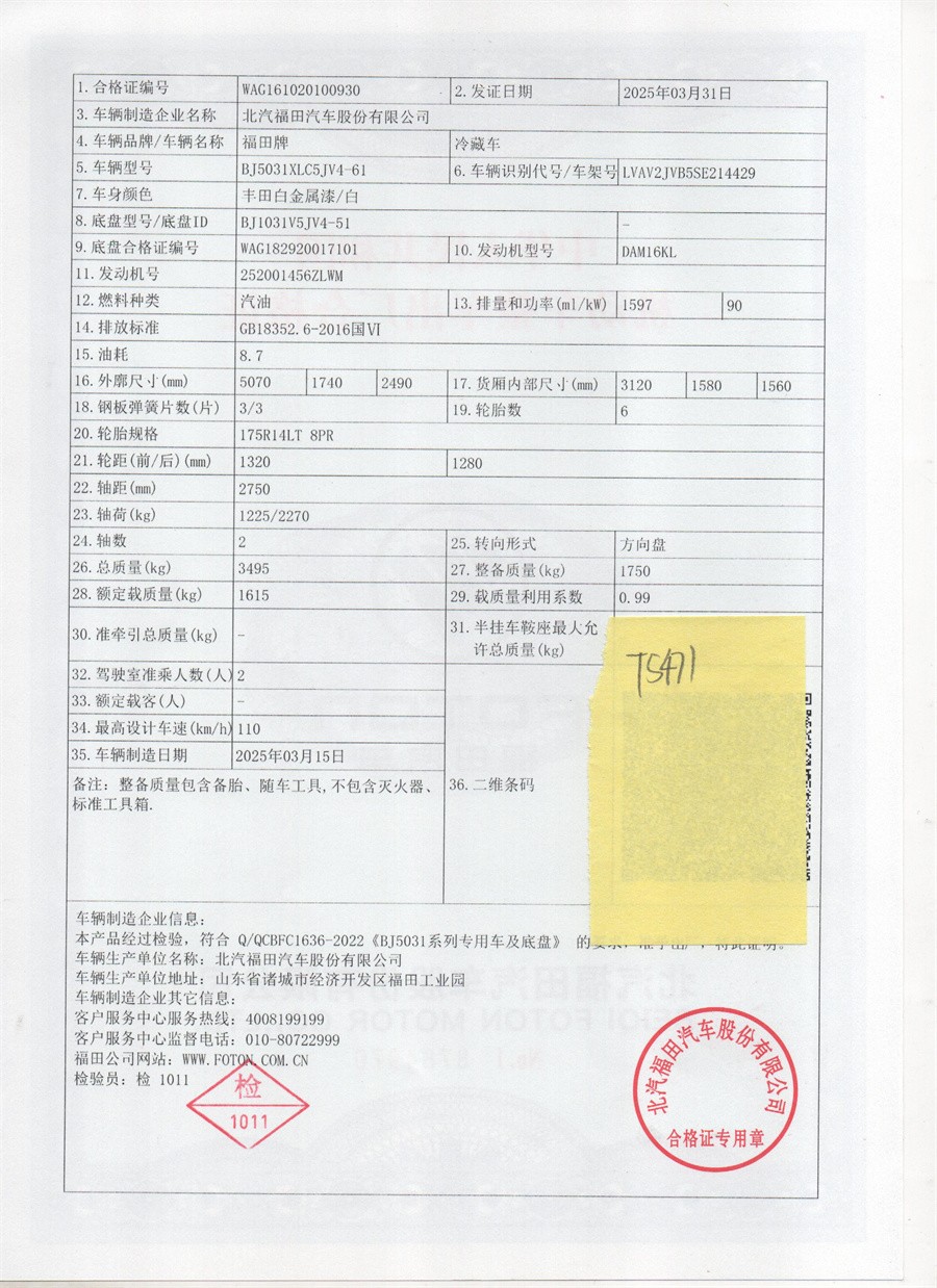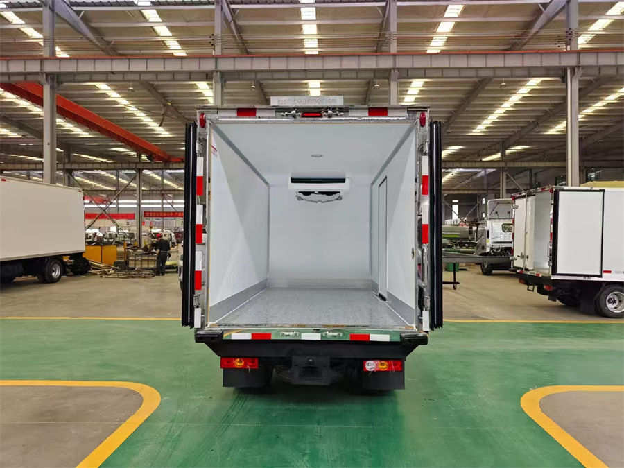 厢体采用内外玻璃钢板材制作,中间填充8cm 厚高密度保温材料,底板选用加厚型防滑花纹铝板,铝合金型材包边,不锈钢门锁件,后双开门,带单侧开门,匹配零下15度制冷机组。其余按冷藏车标配制作。提供机动车上户手续(机动车合格证、上户发票、车辆保修手册、随车工具)。