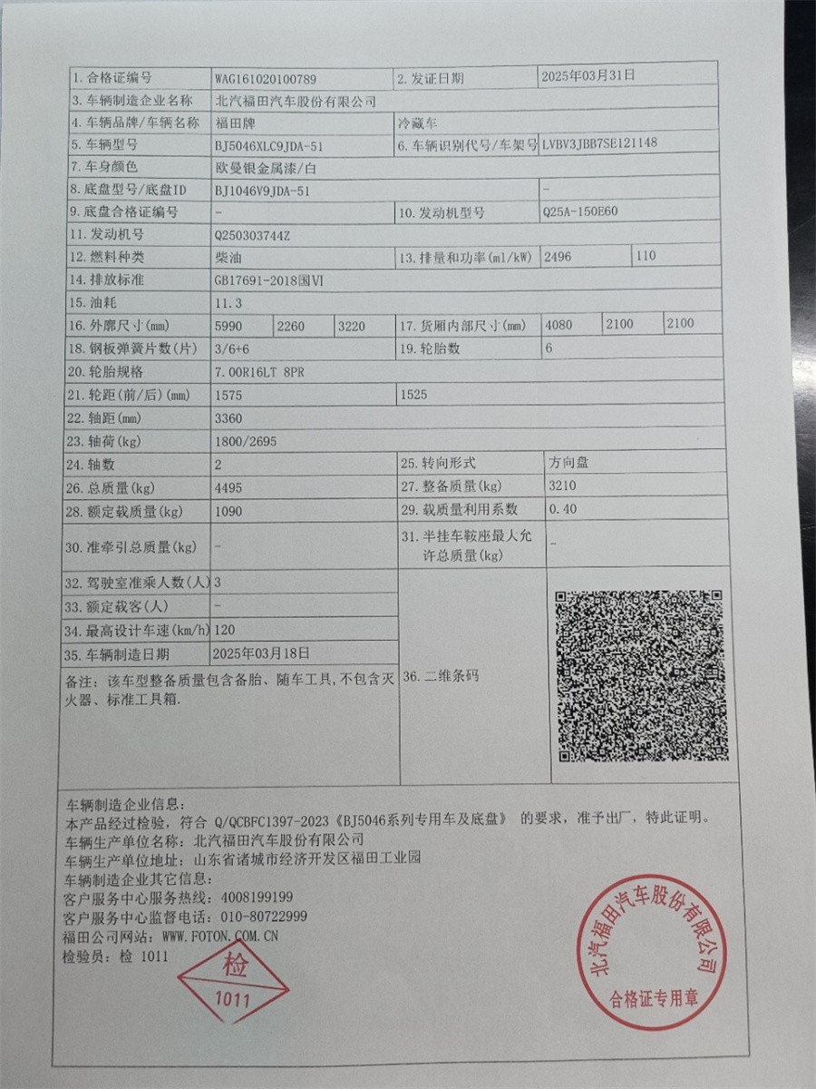 福田领航M5-全柴150马力冷藏车