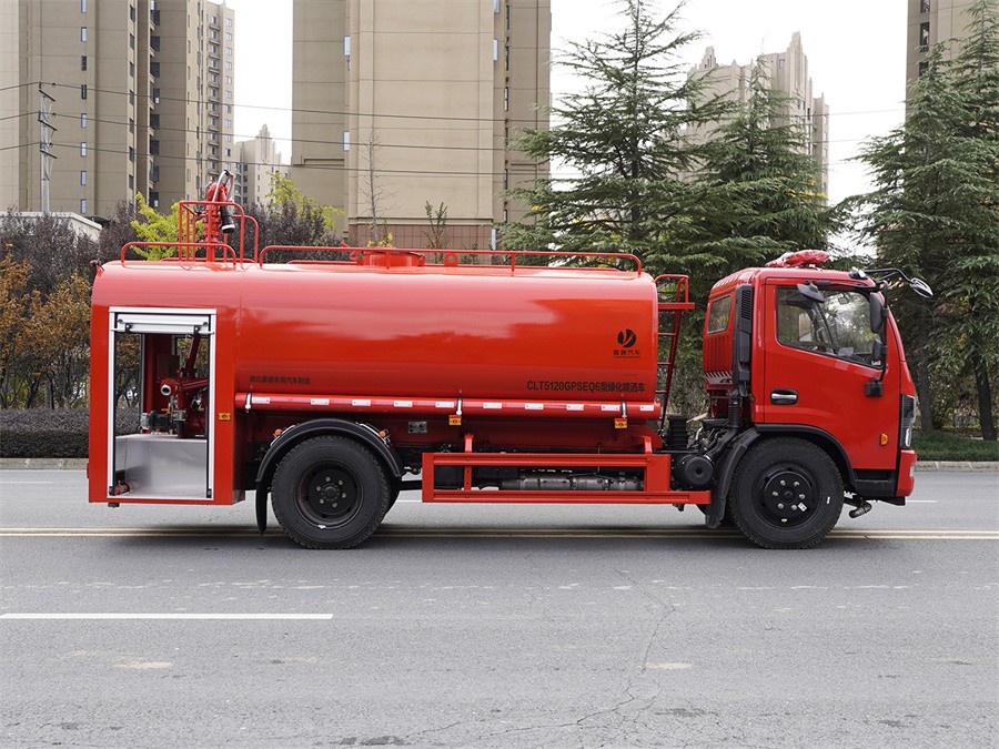 消防洒水车,又称消防洒水两用车、洒水消防两用车、森林消防洒水车、学校消防洒水车、机 场消防洒水车、社区消防洒水、街道及乡镇和乡村消防洒水功能。是一款集消防车和洒水车于一体的 两用车,是介于消防车与洒水车之间,具有消防洒水一体化用途,与消防车相比虽缺少器材箱,但与 消防车的射程相同,具有同样的消防功能。 功能介绍:与洒水车相比,继承了洒水车的全部功能,同时也弥补了洒水车射程小,压力小等 问题。消防洒水车除了装备消防水泵及器材以外,还设有较大容量的贮水罐及水枪、水炮等。可将水 和消防人员输送至火场独立进行扑救火灾。它也可以从水源吸水直接进行扑救,或向其他消防车和灭 火喷射装置供水。优于消防车的功能:因为没有消防车器材箱,底盘高度及车辆宽度更适应山间、乡 镇、乡村的路况,是森林消防、乡镇和乡村消防的有利消防工具。