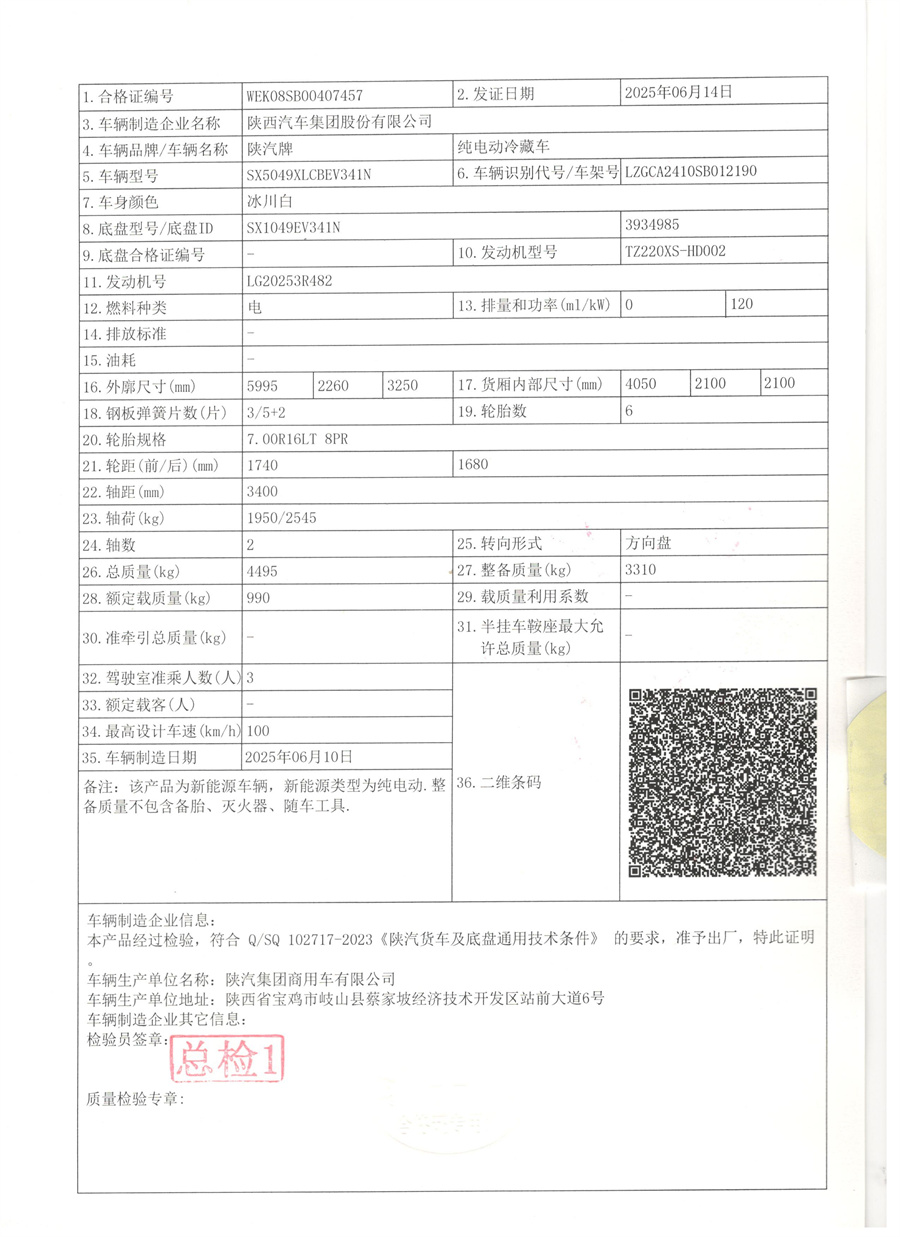陕汽智云S300新能源冷藏车(K8-140.41度电)陕汽智云纯电动冷藏车